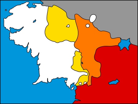 - bílá – území trvale ovládaná Obnoveným královstvím a jeho spojenci