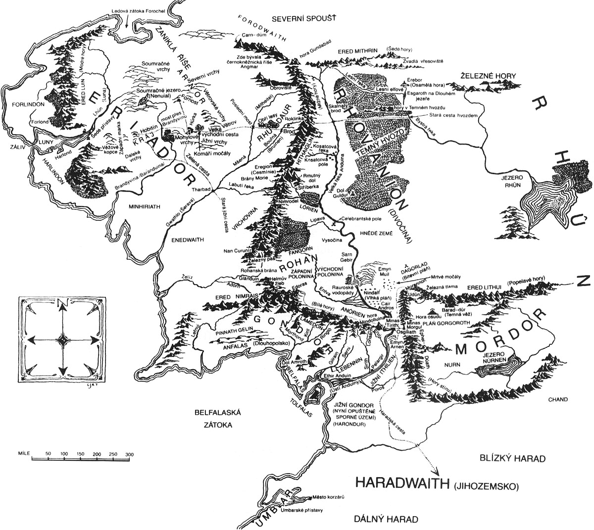 - červená – území trvale ovládaná Mordorem a jeho spojenci